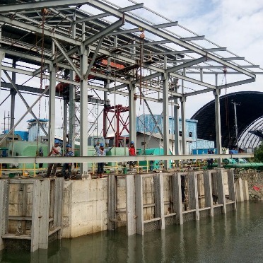 Trash Rack berfungsi untuk menyaring kotoran/sampah di posisi intake sebelum air laut sebagai pendingin menuju kondenser melewati travelling band screen (TBS). Pembersihan sampah pada saringan menggunakan peralatan yang dioperasikan oleh trash rack gantry crane.